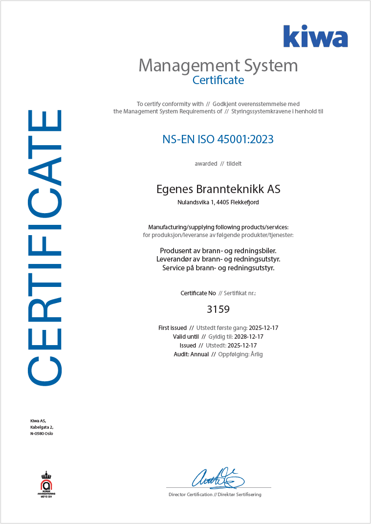 Egenes Brannteknikk har vært ISO 14001 sertifisert siden 2015, og er vel innforstått med dokumentasjon av miljøprestasjoner.